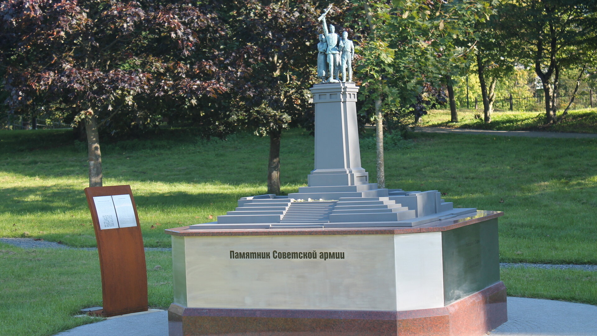 Кадры фильмов, архивные документы и фотографии по каждому монументу в парке миниатюр можно изучить самостоятельно по QR-коду на табличке рядом. Бесплатные экскурсии планируют продолжать до конца октября, если позволит погода. Запросов от школьных и туристических групп много: как рассказал «Клопс» Александр Щеглов, более десяти ежедневно. Заявки необходимо подавать на сайте Национального центра исторической памяти.
