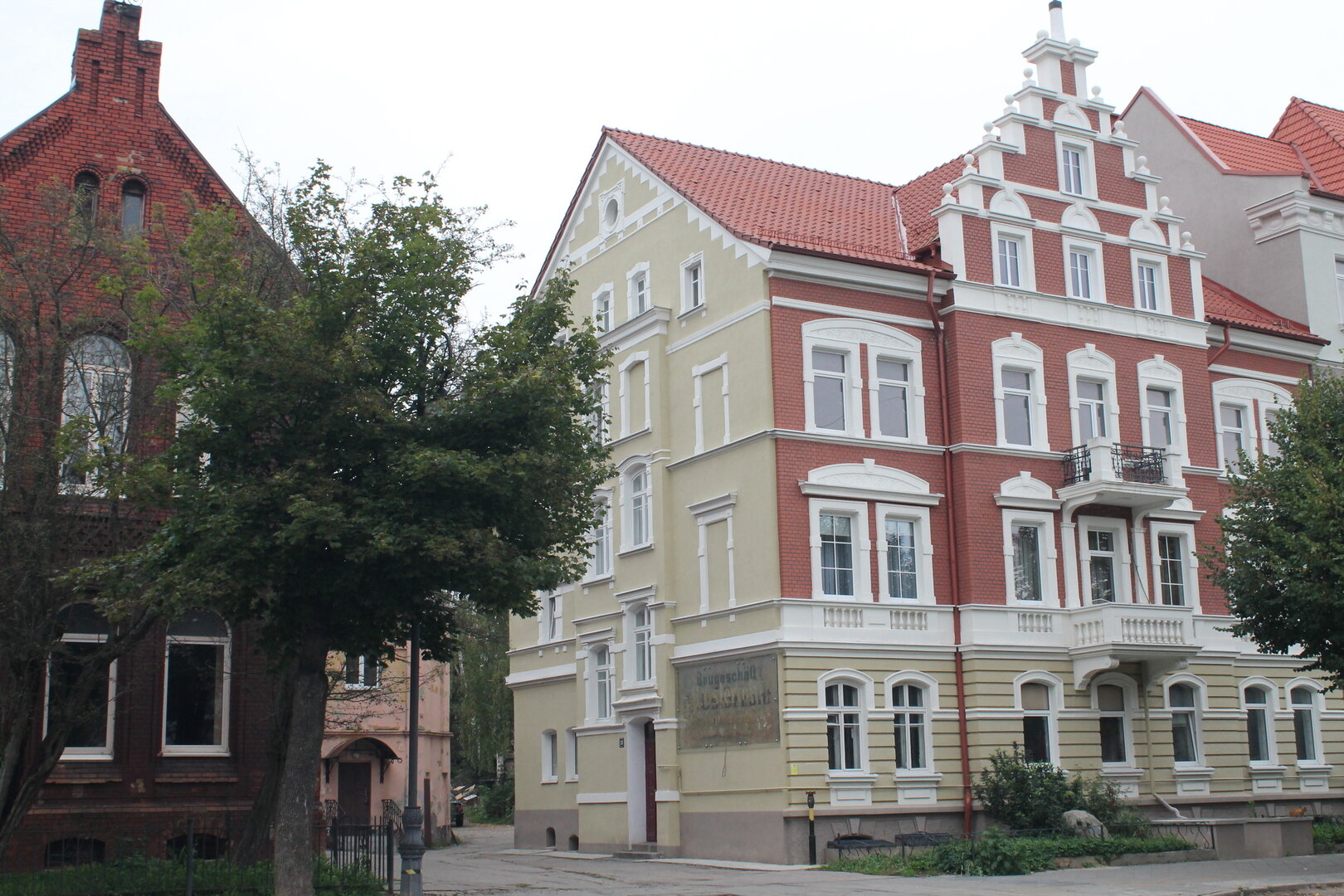 Когда-то это была окраина Инстербурга. Появление железной дороги способствовало развитию промышленности. Город стал стремительно расширяться. Максим привёл статистические данные: в 1861 году население составляло 13 тысяч человек, а в 1910-м — уже 31 тысячу. Немцы так и называли правую часть — Альтштадт, а левую — Нойтштадт, новый город. Здесь дома не старше 1860 года.