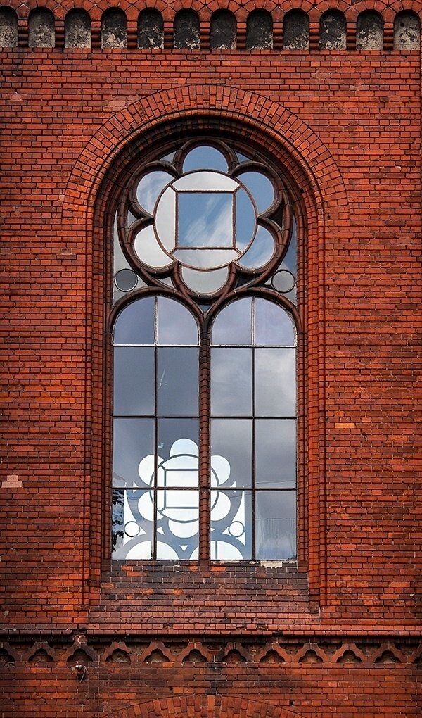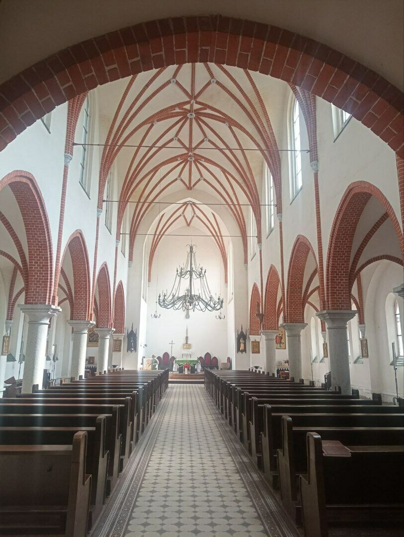 Собор из красного кирпича в неороманском стиле в 1890 году построил кёнигсбергский архитектор Фридрих Адлер. Реформатская кирха с трёх сторон смотрится по-разному.