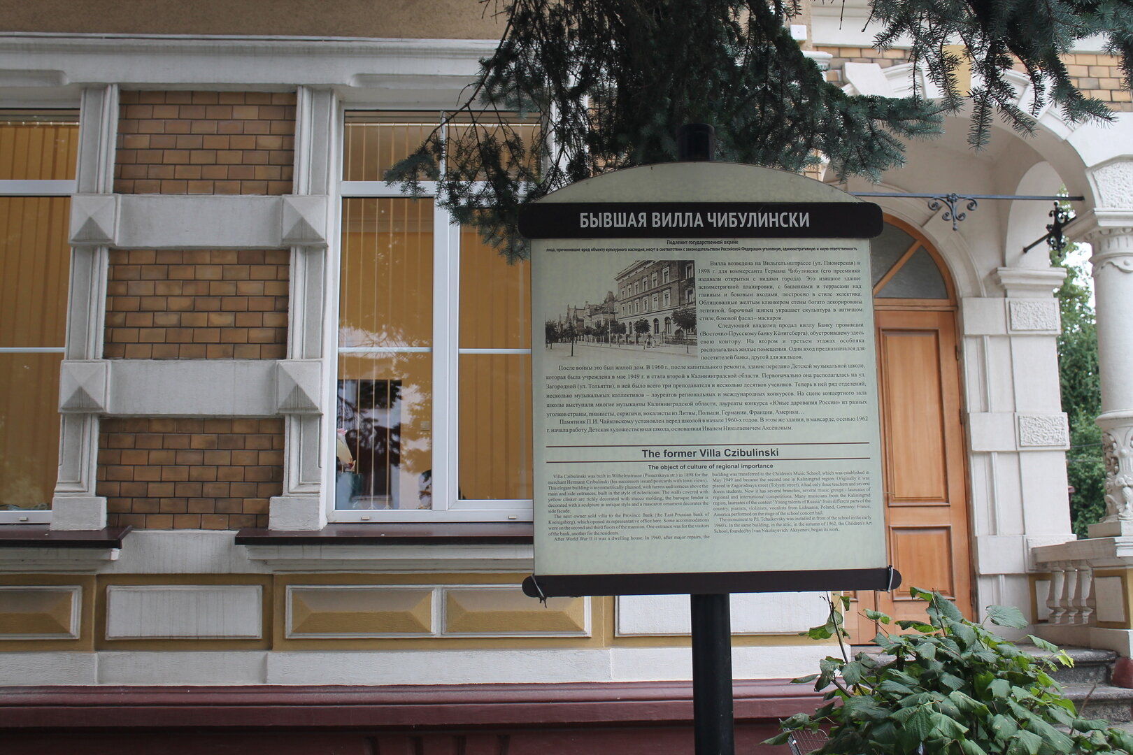 Бывшая вилла Германа Чибулински, торговца и издателя открыток с видами города, построена в конце XIX века. Фасад украшен декоративными элементами. Следующий владелец продал здание Восточно-Прусскому банку. После войны в особняке расположилась музыкальная школа, позднее установили памятник Петру Ильичу Чайковскому.