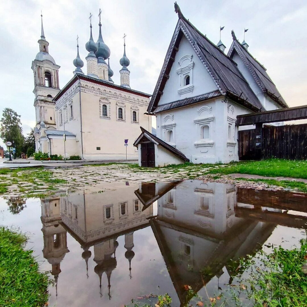 - Валерий сравнивал архитектуру и природу Суздаля — к примеру, вид с колокольни кирхи Фридланда и из Ризоположенского монастыря, а привычные русскоми глазу «деревянные домики на три окошка» — с немецкой кладкой и черепичными крышами. Как говорится, найдите три отличия.